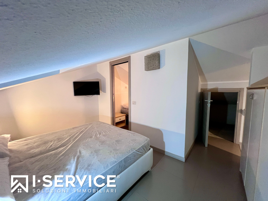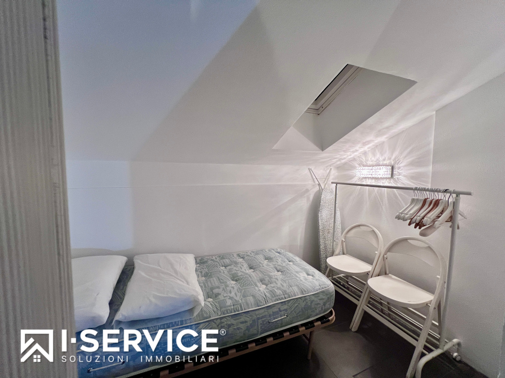 La zona giorno, molto luminosa, è attualmente suddivisa in cucina e cameretta, ma può essere facilmente ripristinata in un comodo open space, con bagno ampio e funzionale al piano.