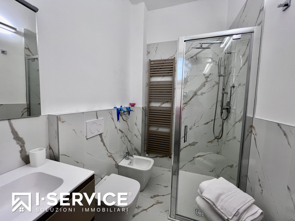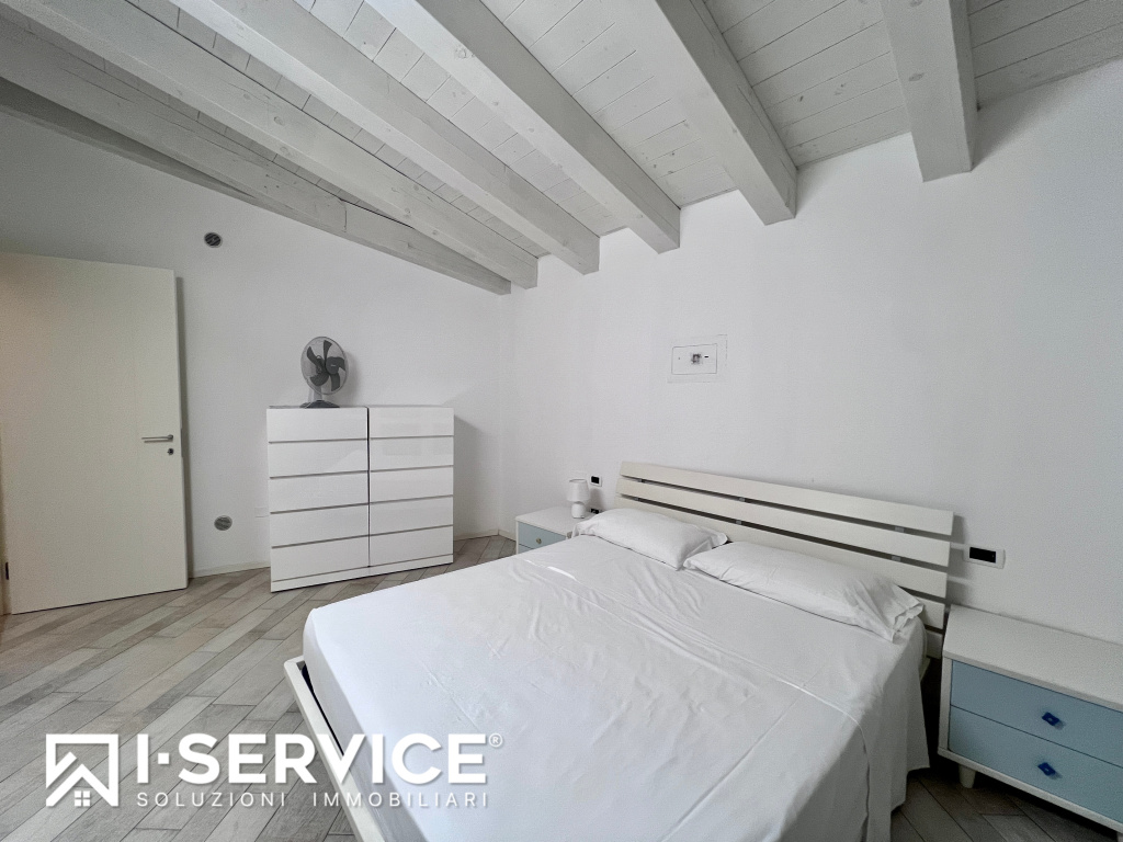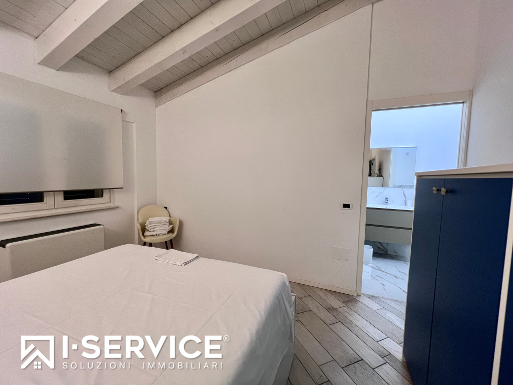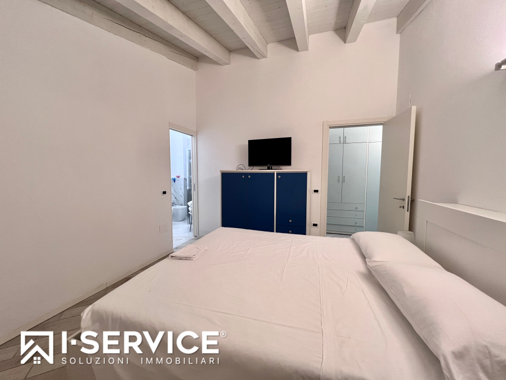 L’immobile, venduto completamente arredato, si compone di un ampio e luminoso open space con zona living e cucina impreziosita da travi bianche a vista, lungo corridoio con armadio a muro, tre spaziose camere da letto – di cui una con bagno privato – oltre a un secondo bagno elegante e funzionale. Videocitofono, materiali di pregio e finiture di alto livello completano questa soluzione.